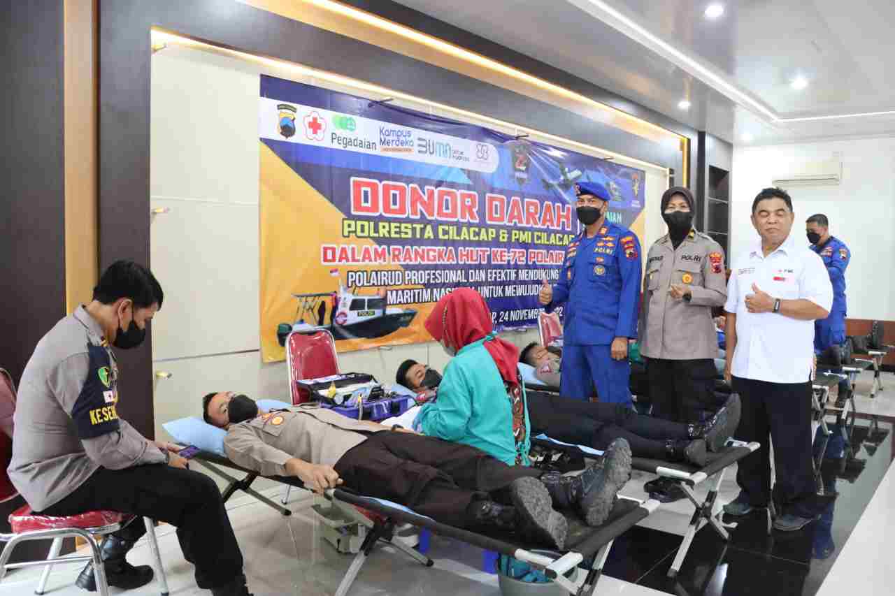 CILACAP, L86News.com – Polresta Cilacap menggelar kegiatan donor darah dalam rangka HUT Polairud ke-72, di Aula Patriatama Polresta Cilacap , (24/11/22). Kegiatan donor darah dilakukan sebagai kepedulian Polri untuk melayani masyarakat yang membutuhkan darah.