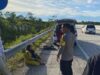Tak berselang lama, Tim dari Dinas Pemadam Kebakaran dan Penyelamatan (DPKP) Kota Sorong bersama petugas piket jaga Posko mudik depan taman Bandara Deo dengan 3 armada pemadam kebakaran sampai dilokasi.