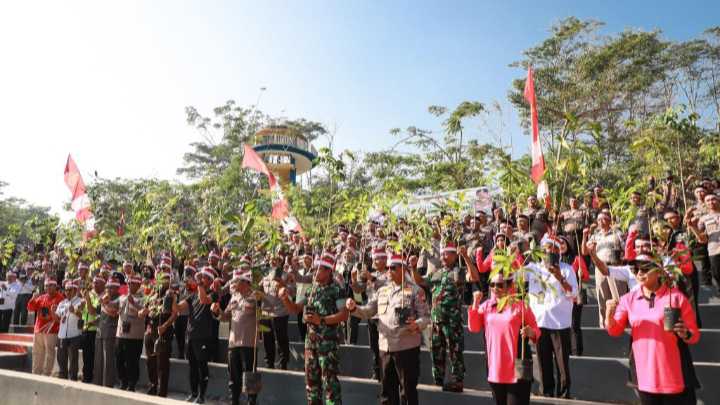 Di wilayah jawa Tengah Kapolda Jateng Irjen Pol Ahmad Luthfi memimpin kegiatan penanaman pohon serentak berlokasi di sekitar Waduk Jatibarang Kecamatan Gunungpati Semarang, Rabu (23/8/2023).