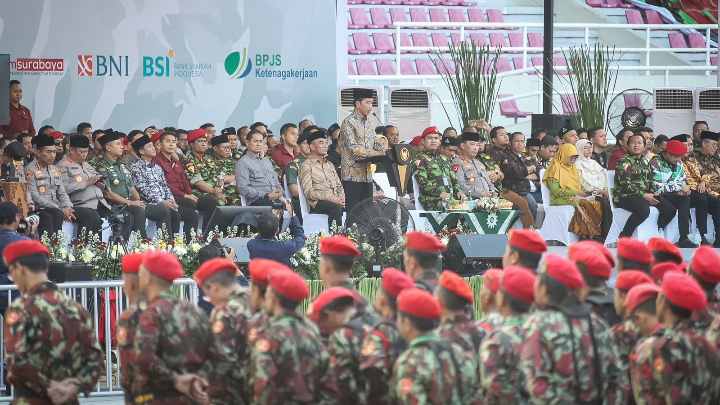 SURAKARTA, L86News.com – Presiden Joko Widodo menghadiri Apel Akbar Komando Kesiapsiagaan Angkatan Muda Muhammadiyah (Kokam) di Stadion Manahan, Solo, Rabu (20/9/23)