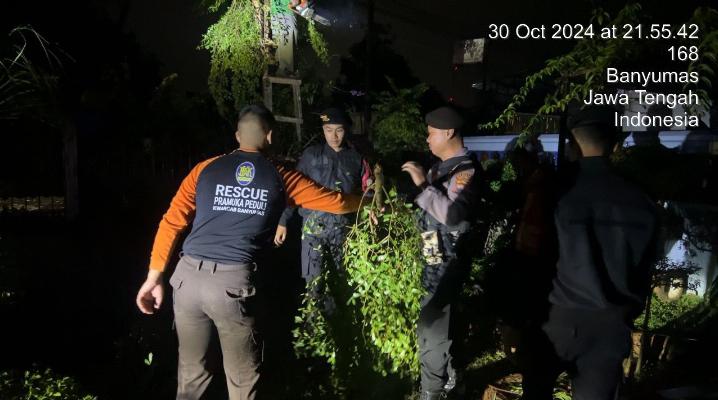 “Rabu (30/10/24) pukul 21.30 wib, personel tim PRC Polresta Banyumas dipimpin Kasubnit 2 Turjawali Sat Samapta Aipda Dalijo merespon cepat dengan mendatangi TKP pohon tumbang yang mengganggu arus lalu lintas di wilayah Desa Kaliori Kalibagor”, ujar Kapolresta Banyumas Kombes Pol Dr. Ari Wibowo, S.I.K., M.H., melalui Kasat Samapta Kompol Subeno, S.H., M.H.