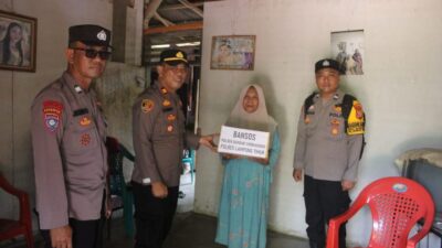 Didampingi Bhabinkamtibmas dan sejumlah personel Polsek, Iptu Romi Azhari berkeliling desa memberikan bantuan sosial langsung ke sejumlah warga kurang mampu di wilayah Kecamatan Bandar Sribahwono.