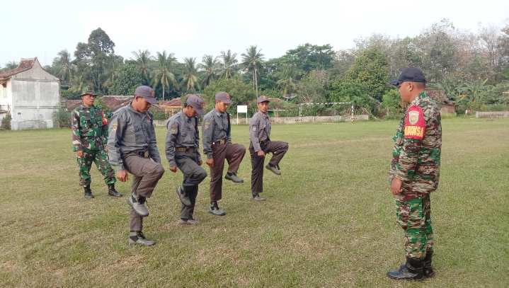 Dalam melatih kedisiplinan Linmas, Babinsa memberikan pelatihan PBB kepada Linmas di desa binaan.