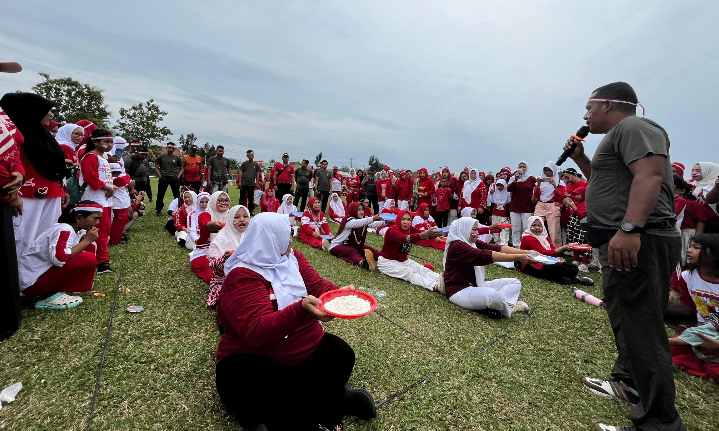 Setelah senam, rangkaian perlombaan pun digelar dengan penuh keseruan. Beragam lomba tradisional hingga hiburan tersaji, mulai dari perlombaan untuk anak-anak, lomba pasangan suami-istri, hingga perlombaan orang tua. Salah satu yang paling menarik perhatian adalah perlombaan masak tingkat Danramil, yang menghadirkan suasana berbeda, penuh kreativitas, kekompakan, dan canda tawa.