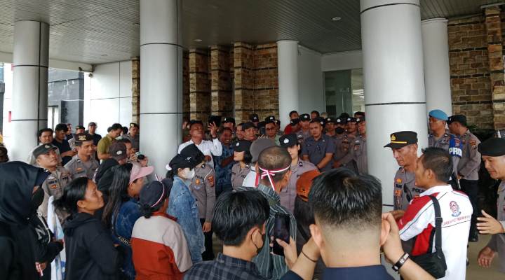 Melihat hal tersebut, polisi yang berjaga mencoba menghalangi langkah Helpin termasuk massa yang ikut masuk ke dalam gedung. Aksi saling dorong antara polisi dan massa tidak terelakan hingga membuat situasi sempat memanas.