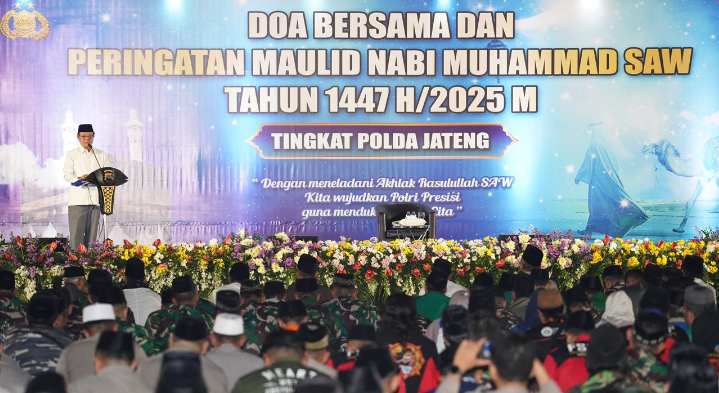 Wakapolda Jateng Brigjen Pol Latif Usman, yang membacakan sambutan Kapolda Irjen Pol Ribut Hari Wibowo, menyampaikan apresiasi atas kehadiran seluruh tamu undangan dan kerja keras panitia. Ia mengajak seluruh personel dan masyarakat menjadikan Maulid Nabi sebagai momentum memperkuat moral, keimanan, serta persatuan di Jawa Tengah.