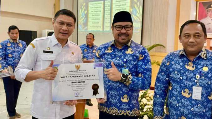 Pemkot Tangsel meraih nilai 85,79 dengan predikat sangat baik, mengungguli Kota Tangerang dengan poin 84,30 dan Kabupaten Tangerang dengan nilai 80,31. Penghargaan diserahkan Sekretaris Daerah (Sekda) Banten, Deden Apriandhi dan diterima oleh Sekretaris Badan Keuangan dan Aset Daerah (BKAD) Kota Tangsel, Billy, pada Rabu (17/09/2025)