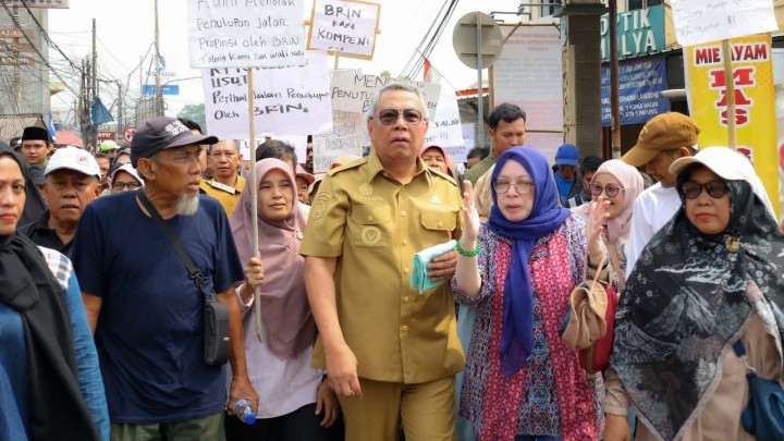 TANGERANG SELATAN, L86News.com – Wali Kota Tangerang Selatan (Tangsel) Benyamin Davnie dengan tegas mendukung warganya. Dia mendukung penolakan penutupan akses Jalan Serpong – Parung yang melintasi Badan Riset dan Inovasi Nasional (BRIN). Pagi ini dengan membawa poster puluhan masyarakat di Muncul, Kecamatan Setu, Kota Tangerang Selatan mengadakan unjuk rasa damai. Mereka menolak adanya rencana penutupan akses jalan.