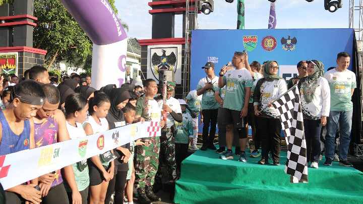 Dandim 0429/Lamtim Letkol Inf Danang Setiaji, S.I.P didampingi Bupati Lampung Timur Ela Siti Nuryamah, Ketua DPRD Lampung Timur Rida Rotul Aliyah beserta jajaran Forkopimda membuka langsung even lari yang menempuh jarak 5KM.