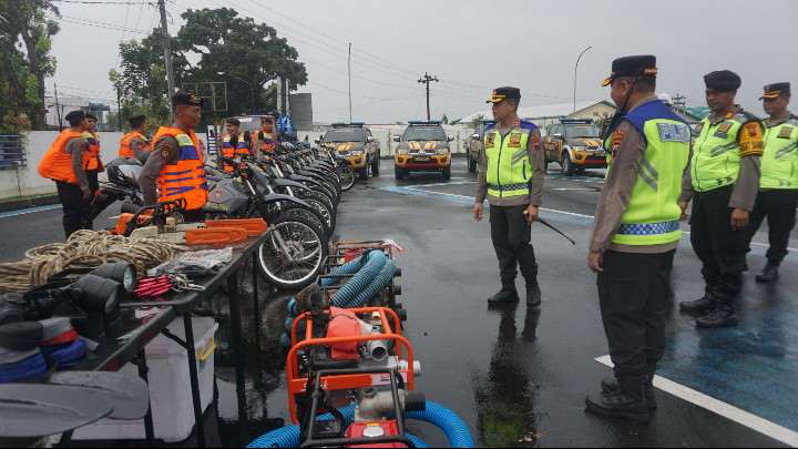 Diguyur Hujan Deras, Polres Purbalingga Tetap Gelar Apel Siaga Bencana