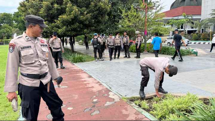 “Penyisiran ini kami lakukan untuk memastikan area benar-benar bersih dari potensi gangguan keamanan. Kami ingin memastikan pelaksanaan sidang berjalan aman dan damai,” ujar Kombes Pol Jaka Wahyudi.