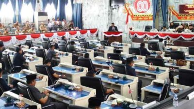 Rapat paripurna tersebut dipimpin oleh Ketua DPRD Lampung Utara, Muhammad Yusrizal, S.T., serta dihadiri oleh Sekretaris Daerah Drs. H. Lekok, M.M., jajaran Forkopimda, para asisten, staf ahli bupati, kepala perangkat daerah dan anggota DPRD Kabupaten Lampung Utara.