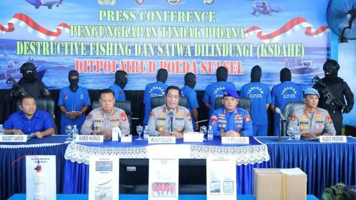 Ungkap Kasus Destructive Fishing dan Satawa di Lindungi, Polda Sulsel Borgol 18 Tersangka