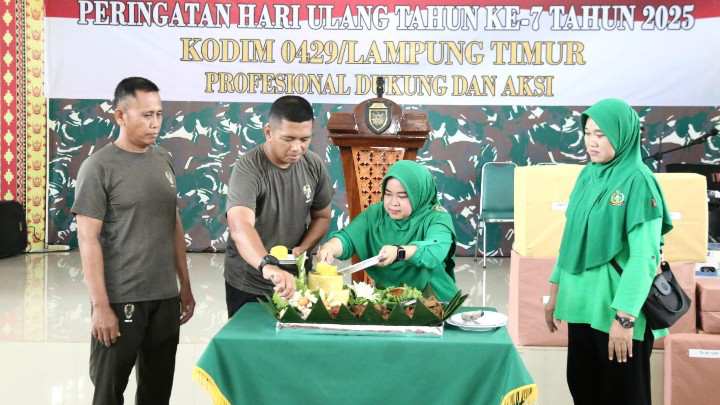 LAMPUNG TIMUR, L86News.com – Komando Distrik Militer (Kodim) 0429/Lamtim menggelar acara syukuran dalam rangka memperingati hari jadi Kodim ke-7, bertempat di Aula Gatot Subroto Makodim, Jum’at (12/12/2025).