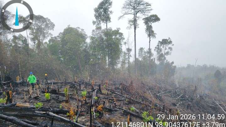 Peristiwa kebakaran hutan dan lahan melanda Kabupaten Mandailing Natal, Provinsi Sumatera Utara, pada Senin (26/1). Kebakaran terjadi di Desa Sikapas, Kecamatan Muara Batang dengan luas lahan terbakar mencapai 30 hektare.