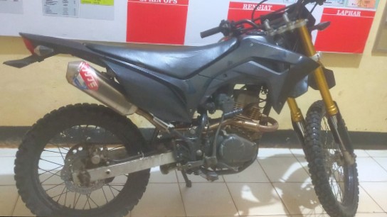 Sementara, lanjut IPTU Romi peristiwa pencurian terjadi pada Sabtu malam sekitar pukul 22.00 WIB, saat korban memarkirkan satu unit sepeda motor Honda CRF warna hitam di ruang dapur rumah dalam keadaan terkunci stang.