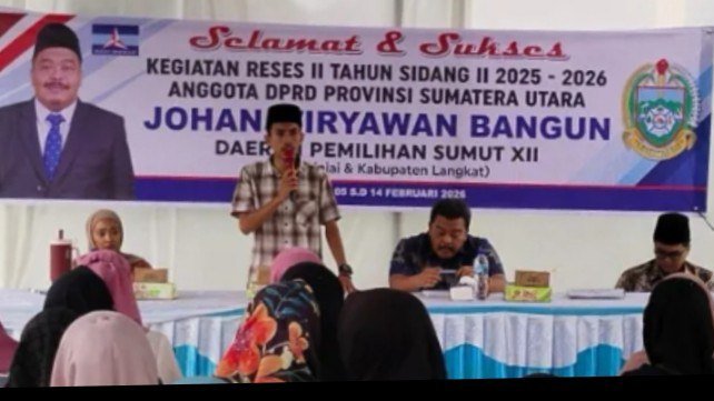 LANGKAT, L86News.com – Anggota DPRD Provinsi Sumatra Utara dari Partai Demokrat, Johan Wiryawan Bangun, melaksanakan kegiatan Reses Ke II Tahun Sidang Ke II Tahun 2025/2026 di Desa Teluk Bakung, Kecamatan Tanjung Pura, Kabupaten Langkat, Selasa (10/2/2026).
