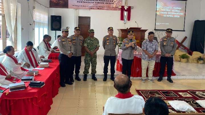 LAMPUNG TIMUR, L86News.com – Polres Lampung Timur melaksanakan pengamanan dan pemantauan kegiatan ibadah Jumat Agung dalam rangka peringatan wafatnya Yesus Kristus tahun 2026 yang digelar di Gereja GKSBS Sribhawono, Kabupaten Lampung Timur, Jumat (3/4/2026).
