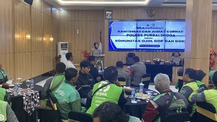 PURBALINGGA, L86News.com – Polres Purbalingga menggelar kegiatan Jumat Curhat dan Silaturahmi Kamtibmas bersama komunitas ojek online (Ojol). Kegiatan dilaksanakan di Aula Wicaksana Laghawa Mapolres Purbalingga, Jumat (10/4/2026).