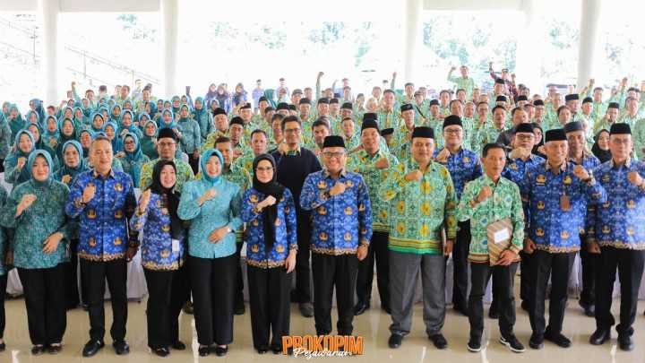 PESAWARAN, L86News.com — Pemerintah Kabupaten Pesawaran menggelar Rapat Koordinasi (Rakor) dan Halal Bihalal Kepala Desa se-Kabupaten Pesawaran yang berlangsung di GSG Lamban Agung, Komplek Rumah Dinas Bupati Pesawaran, Desa Negeri Sakti, Kecamatan Gedong Tataan, Kamis (16/4/2026).