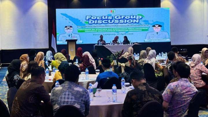 PESAWARAN, L86News.com — Pemerintah Kabupaten Pesawaran melalui Badan Pengelolaan Keuangan dan Aset Daerah (BPKAD) menggelar Focus Group Discussion (FGD) Penyusunan Asumsi Dasar Ekonomi Makro (ADEM) dalam rangka penajaman isu strategis dan sinkronisasi peran Organisasi Perangkat Daerah (OPD). Kegiatan ini berlangsung di Hotel Akar, Bandar Lampung, Jumat (17/4/2026).