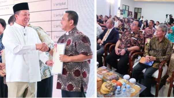 Sementara itu, Kepala Kantor Wilayah BPN Provinsi Banten Harison Mocodompis menyampaikan bahwa dilaksanakan juga penyerahan 12 (Dua Belas) Sertipikat Hak Atas Tanah dengan rincian 11 (Sebelas) Sertipikat Rumah Ibadah, dan 1 Sertipikat Lembaga Pendidikan Kristen yang berada di wilayah Provinsi Banten.