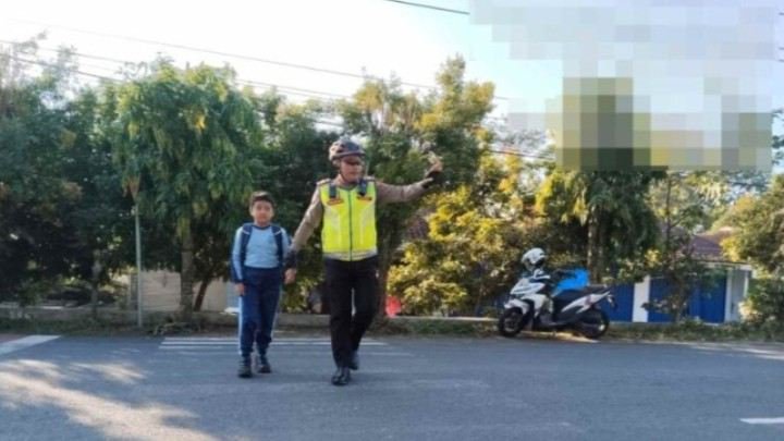 Guna memastikan keamanan masyarakat tersebut, personel Kepolisian tampak sigap membantu penyeberangan anak-anak sekolah, mengatur arus kendaraan dan memastikan kelancaran mobilitas di jalur tersebut.